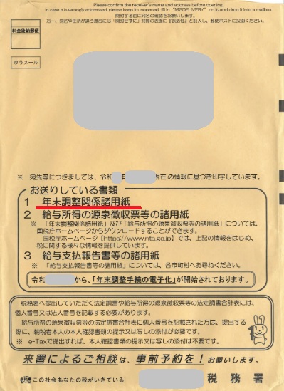 11月になると、税務署からこんな感じの大きめの封筒が届きます。