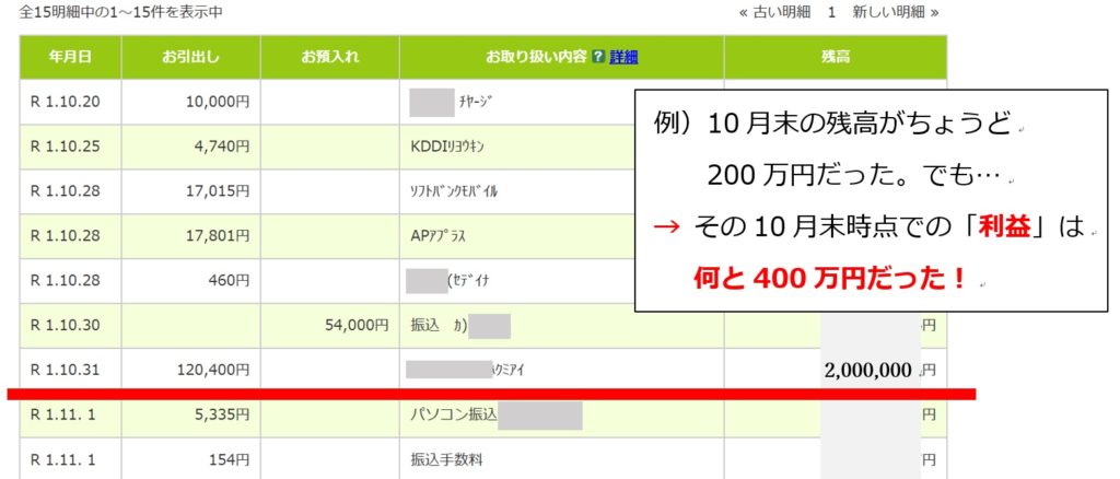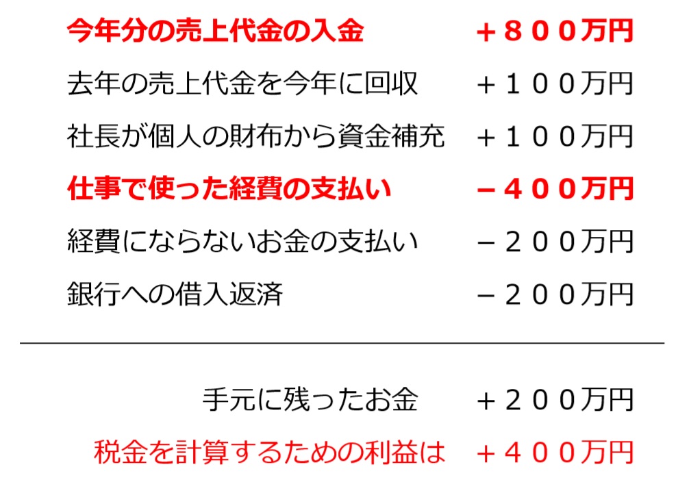 決めたとしても、やっぱり手元資金の残高と利益は一致しないことが