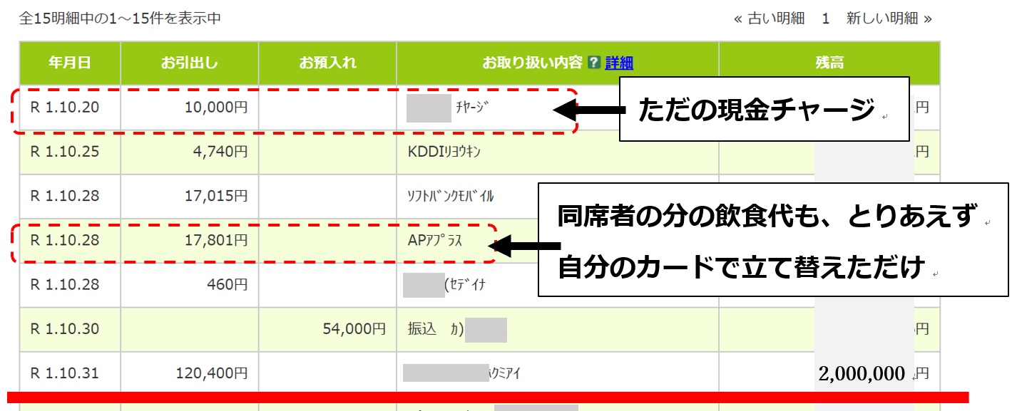 お金が出ていったからといって、ただ自分の電子マネーにチャージしただけ