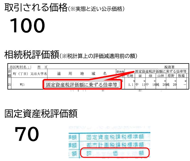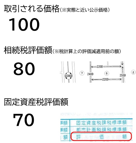 「相続税評価額」は公示価格(実勢価格にだいたい近い金額)の80%くらい