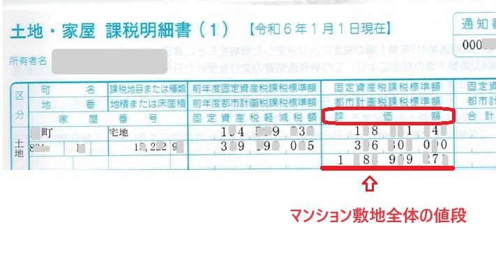 マンションの場合は、この評価額というところに、とんでもなく大きな金額が