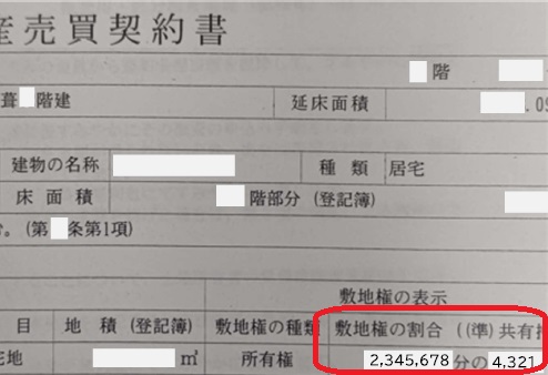こういう場合は「自分がもっている部分の割合」つまり敷地権割合という数字を